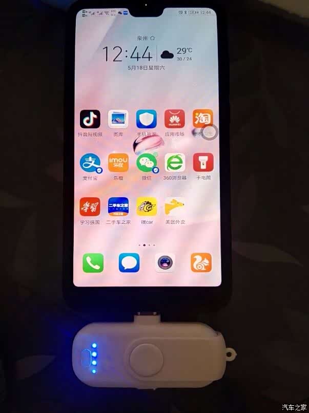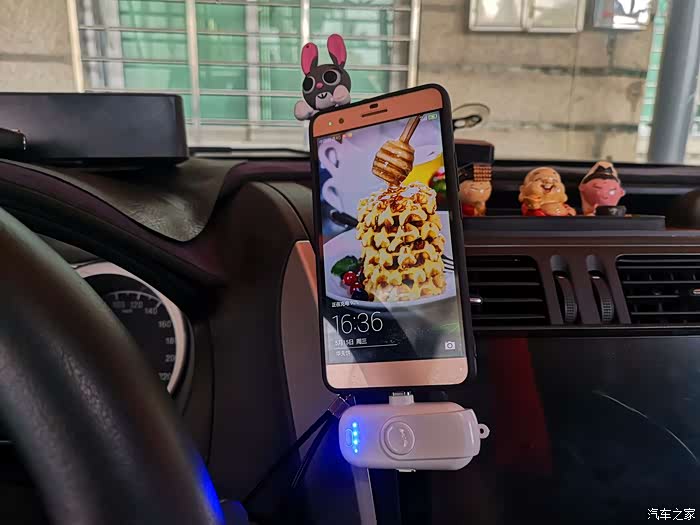 这是荣耀6plus手机,放在车上,比起传统充电宝,不占位,也没有电源线缠绕。