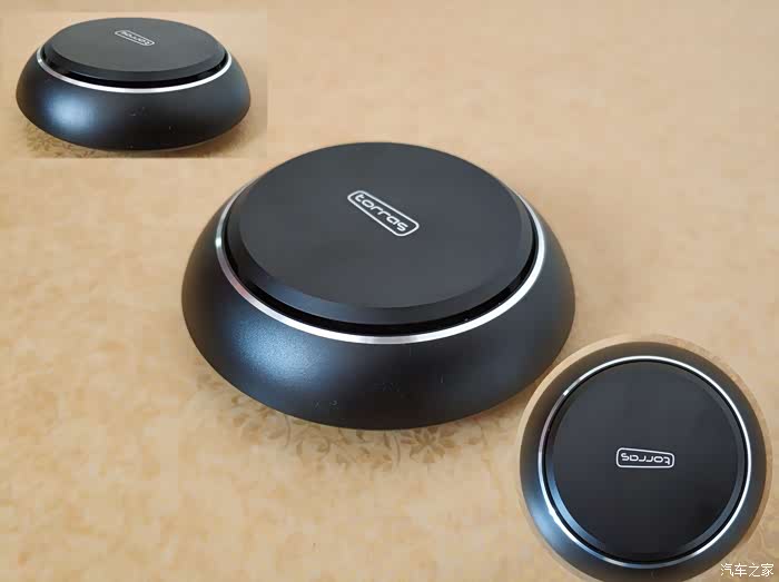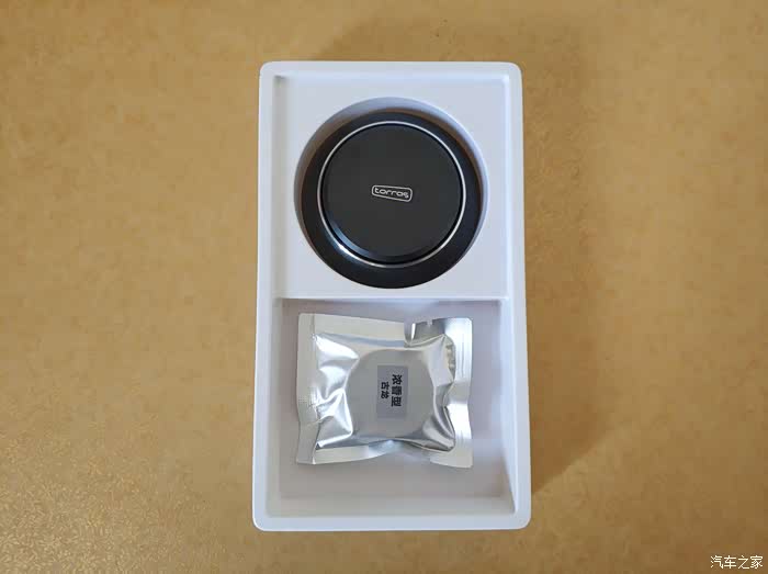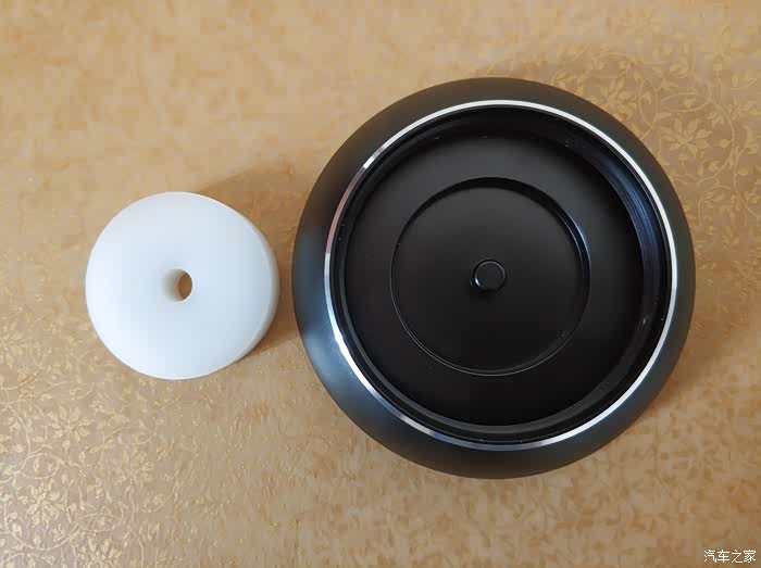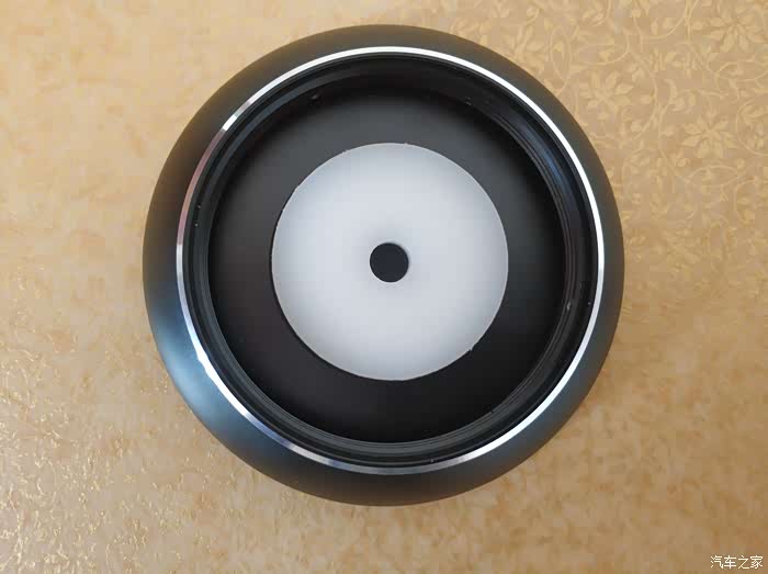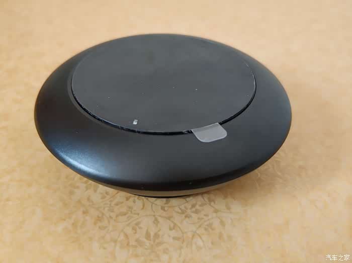 包装挺高大上,但是拆开后,首先映入眼帘的就是这个黑色的小物件,我没想到的是这东西这么小啊!这个是圆形的,直径是7.4CM,高是2.1CM,黑色的显示比较高档。但是拿在手里还挺沉的,不知道这是什么金属材质的。