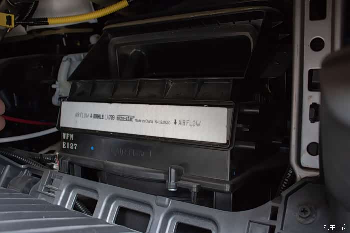 滤芯侧面有方向指示,因为空调滤芯是有方向性的,据说装反的话,稍微影响过滤效果
