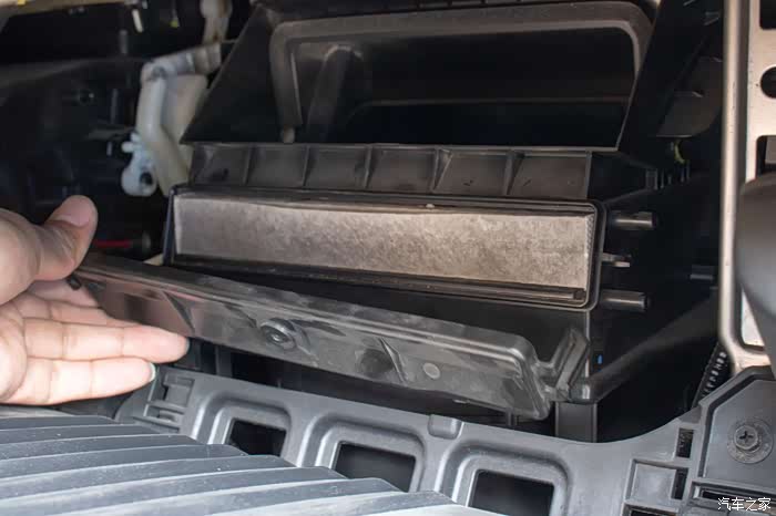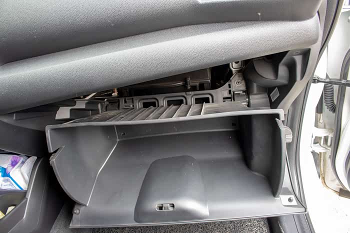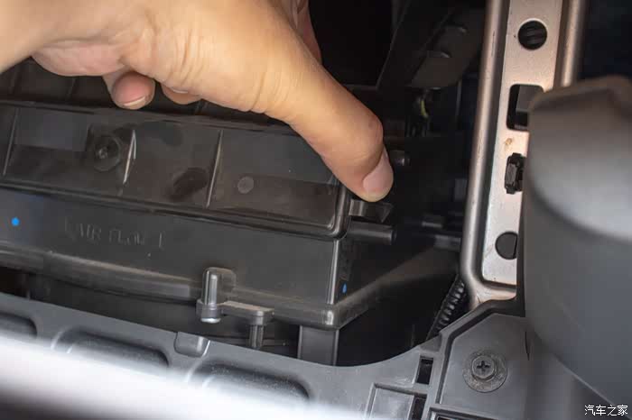 打开手套箱。当然这也是看不到空调滤芯的,还得继续拆