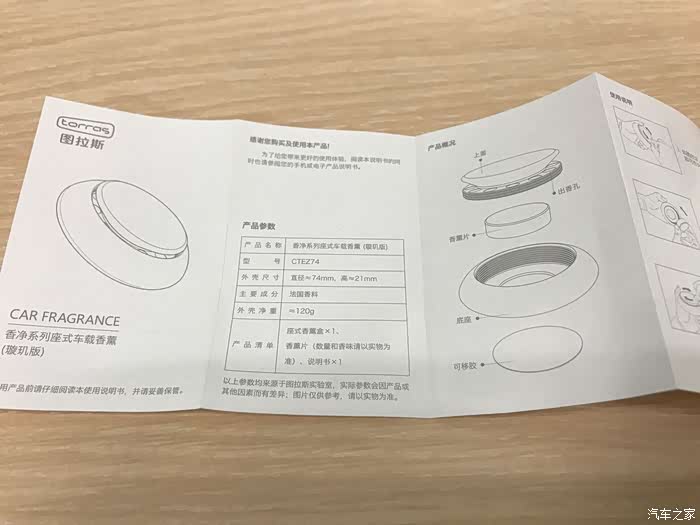 固态香薰片、车载香薰座、说明书