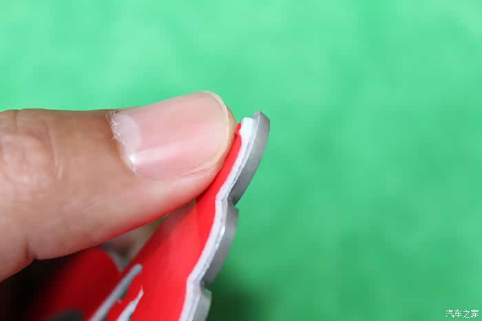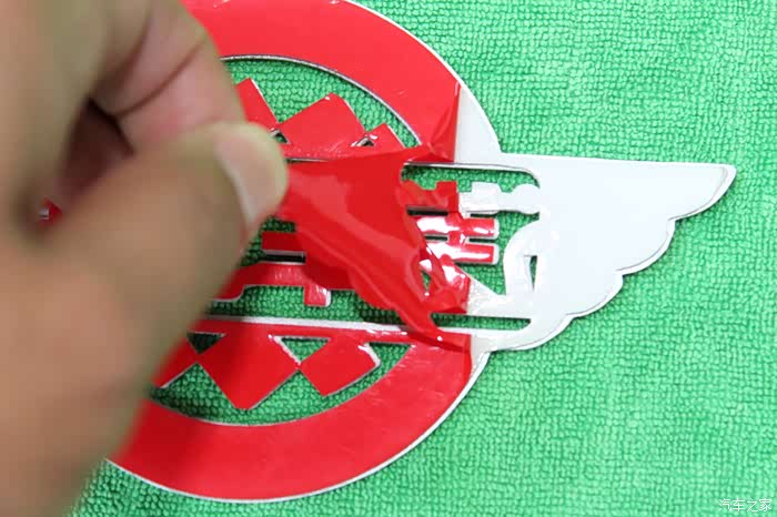 车标背面是贴满了一块红色的双面胶