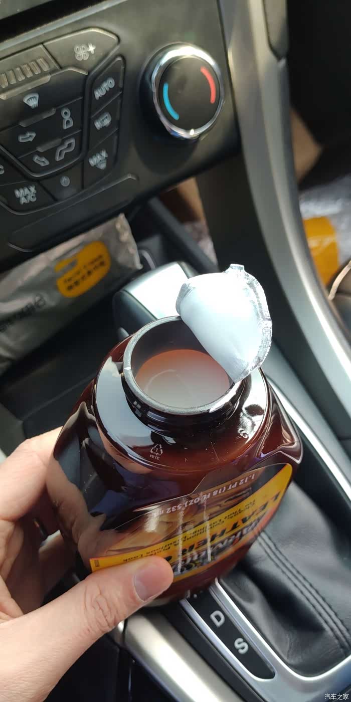 回到主题,这款真皮座椅护理剂的质感还是相当的不错的,首先产品的外观方面,英文包装配上褐色黄色的沉稳色感,高大上的气质就出来了,虽然看包装,哪哪都看不太懂,但又不能被看出来自己的英文太LOW,总之,包装不错就完事了。。。护理剂呈现乳白色,气味有点淡香,使用时候的形状嘛。。。EMMM难以描述,大家一会往下看就知道了。某饮料的瓶口也是这样设计的,是喷射出来的。标题真皮座椅护理剂中的真皮是不能丢掉的,你得有真皮的车,然后才能体验到真皮护理后的质感哦。下面是图文评测详情。