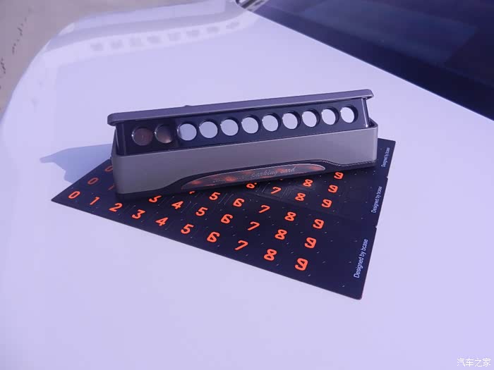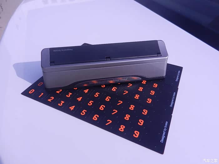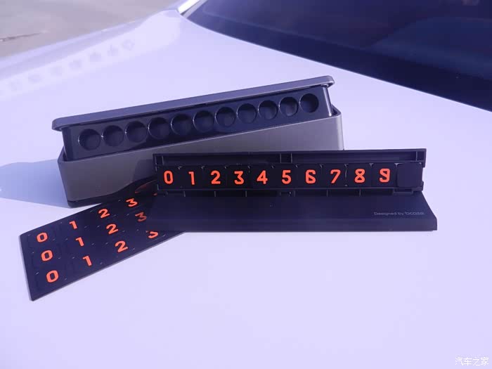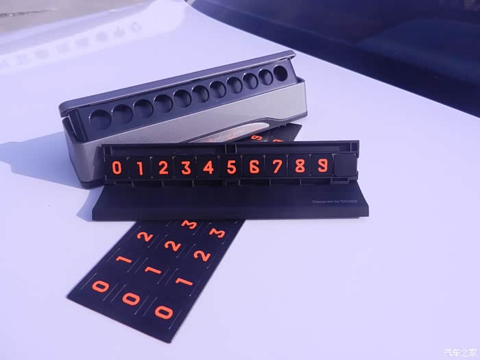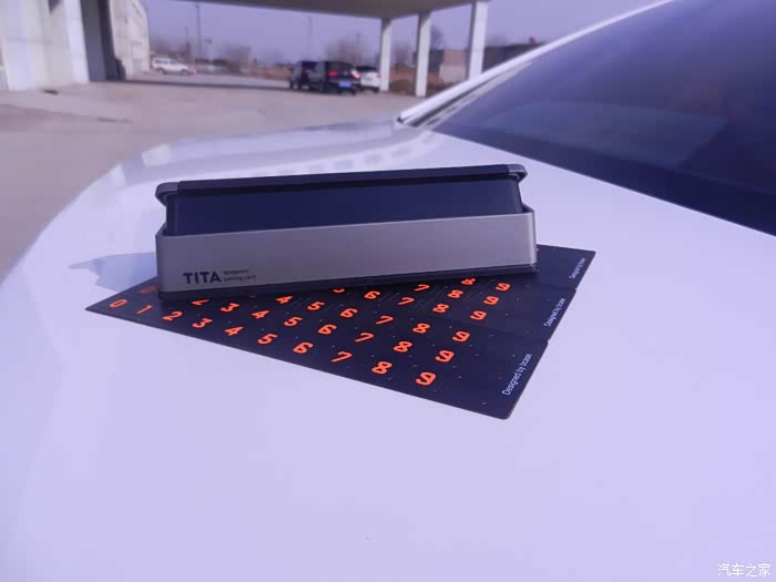 说实话,这款TITA二代挪车牌的做工用料还是不错的,底座是合金材质,主体由ABS塑料、合金装饰、反光材质组成,主体为哑光色,可以减少前档和中控反光影响视线。粘贴号码为软磁性材质,方便更换