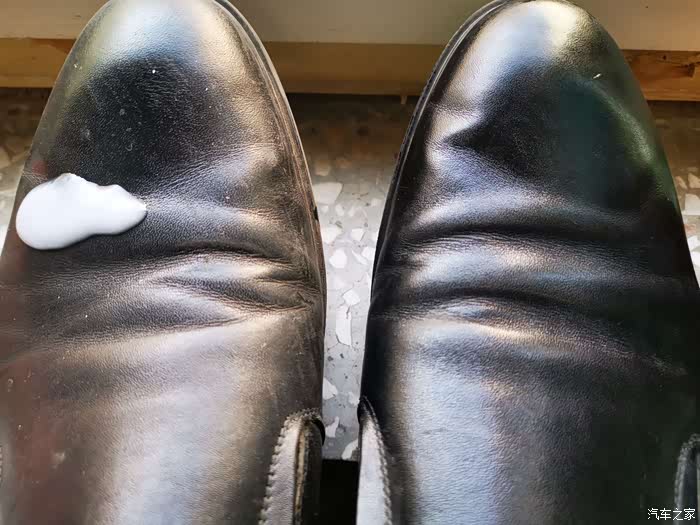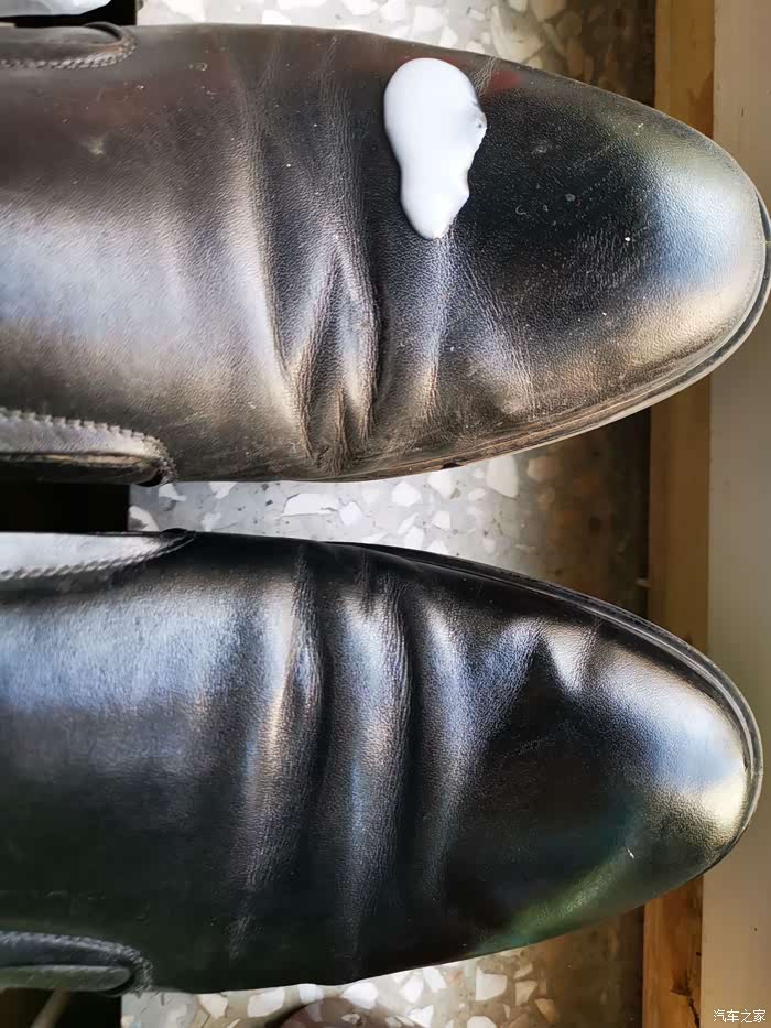 拧开盖的话里面就是保护盖,撕掉盖盖就可以挤了,先试一试皮鞋的效果怎么样。