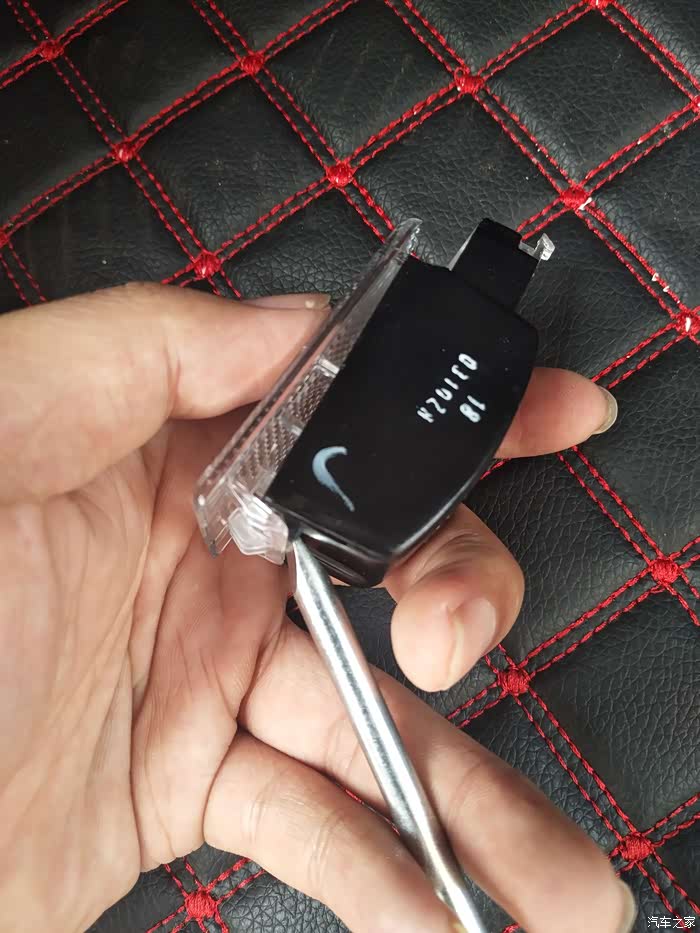 我们现在需要把灯罩打开,用随车工具的一字螺丝刀轻轻的网上撬