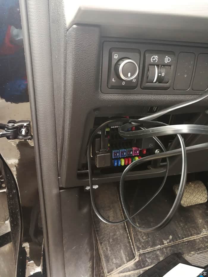 由于我用的避光垫 安装其实很简单 这是隐藏在仪表盘旁边的线 上边的照片大家可以很直观的看到线的走向