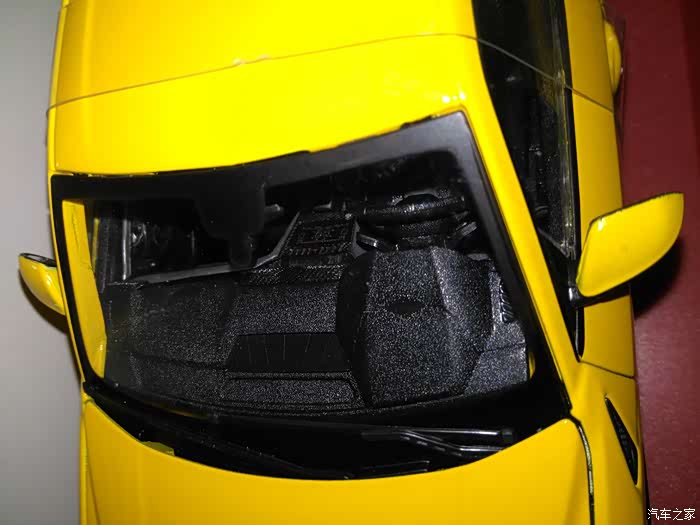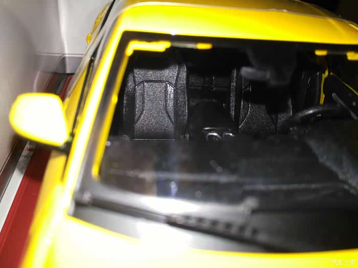 细节部分可以看到,车门加了塑料条包裹,防止自行打开,引擎盖,后车门有贴纸贴合,防止运输途中开合造成损坏。整体上跟实车相似度80%吧