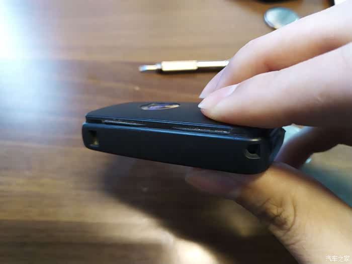 反过钥匙背面,拉住弹簧卡口,抽出物理钥匙