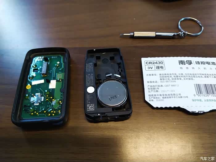 去文具店买粒纽扣电池,型号为cr2430,拿出扭眼镜用的小螺丝刀