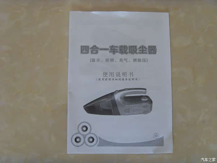 车友们放心使用,吸尘.照明.充气.测胎压四和一安装方便简单实用是车友们为爱车必备的物品