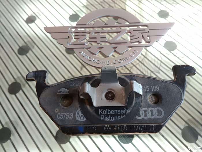 旧刹车片特写,有金属光泽,是普通的金属刹车片。好吧,先写到这里吧。总结一下:陶瓷刹车片比普通刹车片制动力好,热衰减小的优点深受广大用户的青睐。在此次测试中,最先装上的时候并没有想象中的制动效果,甚至制动力不如原车的刹车片。这让我很是不解。修车的师傅说要慢慢磨合,不要急于求成。于是把车开回家,下午去市里继续磨合。开了几十公里之后,感觉刹车比最开始刚安上时效果好了,但还是与原车有点差距。制动力赶不上原车金属片。 经过这两天磨合我发现,现在的耐磨士陶瓷片比原车的刹车片效果好了,比原车片制动力稍微大了点。继续磨合,我会补上后续用车感受!