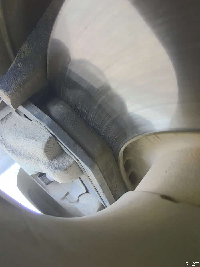 这是原车刹车片,跑了两万七千公里,刹车片还很厚。