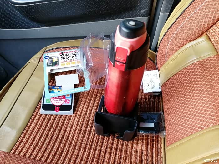 先把我随车的大茶杯放上面试试,没想到这么大的茶杯也能放上去。