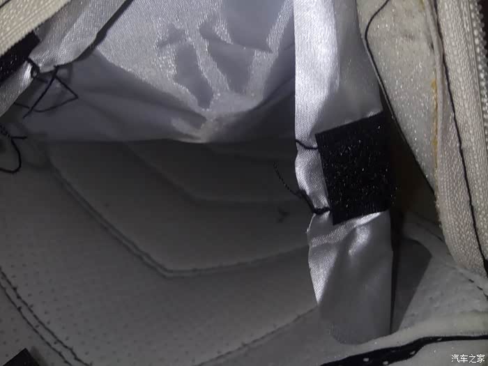 打开坐垫,看材质应该是仿皮的,背部和坐垫出都是打孔皮革,这样应该可以通风透气,头枕部和周边是整皮的,走线整齐,没有线头,做工还是不错的。