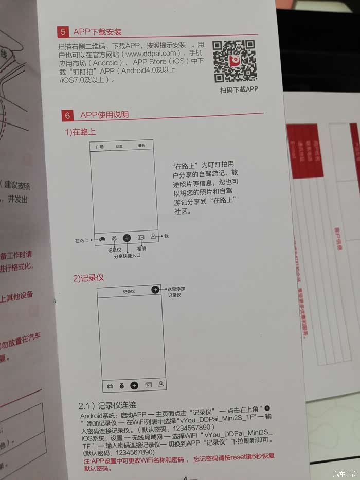 温馨提示,附有初始密码,手机下载APP后连接用