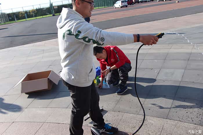 这个洗车机还能调节水雾状的,避免对车漆造成伤害,这个貌似不能调节出扇形的。有点可惜