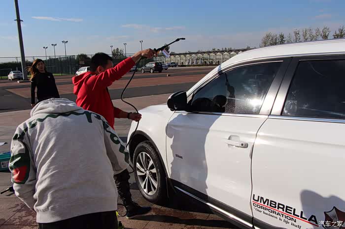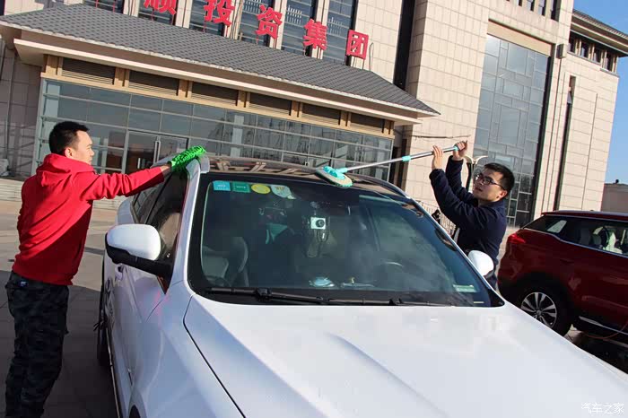 洗完车顶,洗两侧,看看清洗的多认真,还是白色的车辆比较好清洗