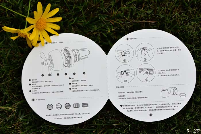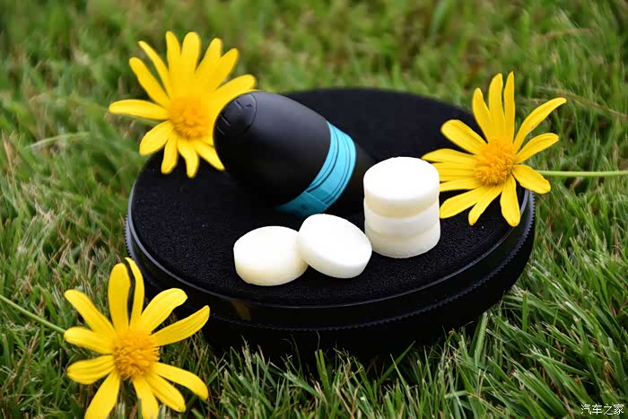 其设计结构很简单,由旋转叶片跟车载支架两部分以及外加香料片一盒组成。