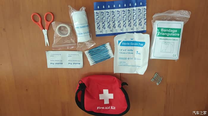 里边有创可贴、剪刀、纱布、别针,可以应急。