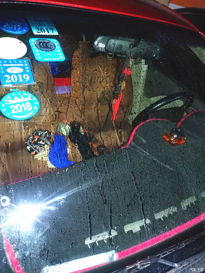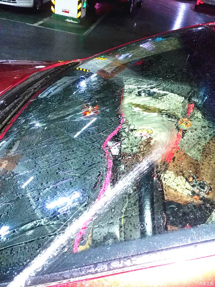 使用雨刮器将水刮走,副驾一侧形成了雾状,主驾一侧马上清晰。不过喷涂过拔水剂后,雨刮器明显有卡顿现象了。应该是拔水剂使前风挡变涩。
