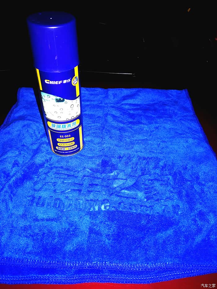 再次擦干,这回用毛巾将风挡分成2部分。驾驶室位置用拔水剂喷涂。副驾驶不用拔水剂看效果。喷拔水剂的时候是雾状的,因为说明书要求要不等它干了就要擦拭均匀,所以没有来得及拍照。涂抹均匀后前风挡光亮如初,没有异常污垢残留。