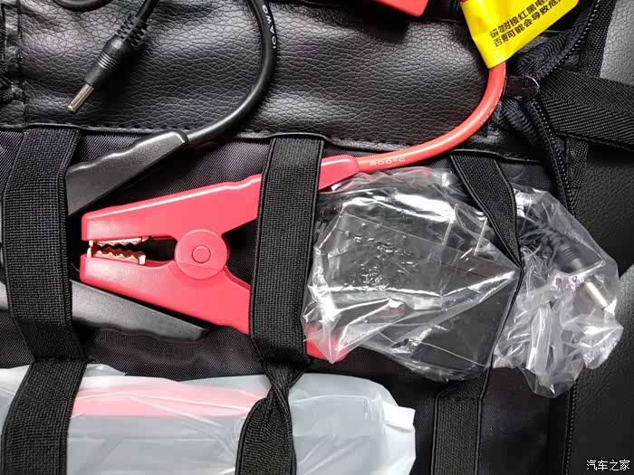 各司其职完美的便携包、应急启动电源被绑得严严实实的