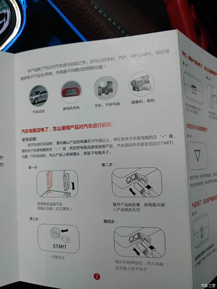 说明书里面的各种说明和图解、让我这小学没毕业的人很快就知道怎么使用这应急启动电源