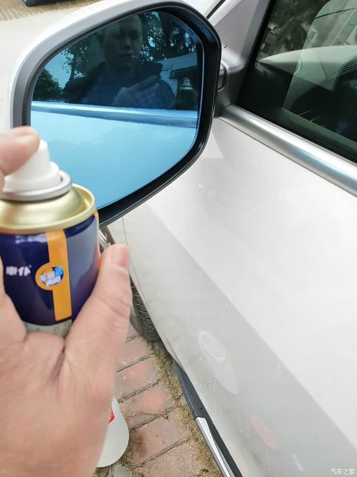 本来是想测试挡风玻璃的。但是由于局限于场地,家住在7楼,在一楼露天停车场无法使用水枪模拟下雨,所以本次测试只能提桶水测试两个后视镜!下雨方式,家里浇花使用的喷水壶!