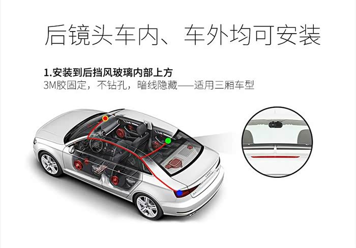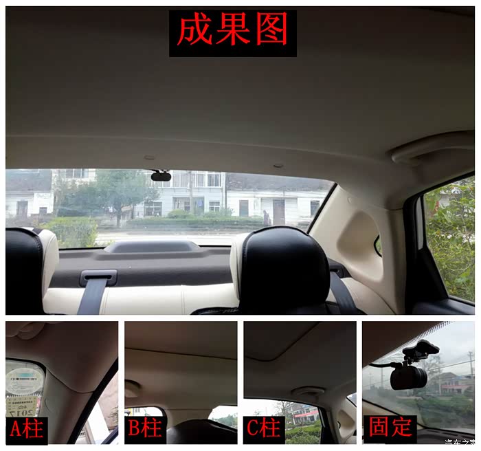 一:从前档顶棚依次走A-B-C柱上方直接到后档的顶棚中间位置,然后固定后摄像头就可以了,全程走线可以全部隐藏。