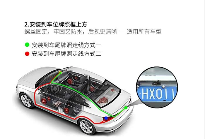 二:如果想把后摄像头放在牌照那里,可以从前档依次走A-B-C柱后下来走后排座椅通往后备箱,从牌照灯那里出来就可以了,这样走线有点技术要求。