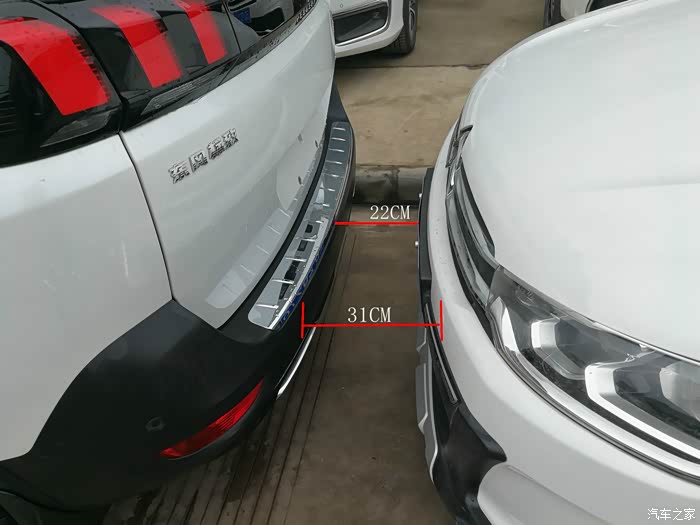 车距最近约为22CM,雷达处为31CM