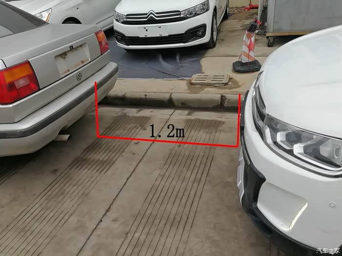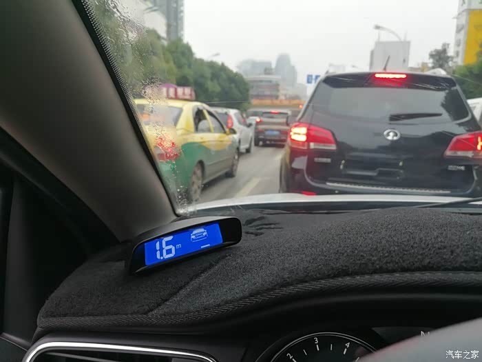 到达路边停车,找一辆小轿车,慢慢缩短与前车距离,雷达感应,距离数字显示,图案矩阵显示,声音报警响起,语音没有播报(可能是我没找到设置?),在显示1.4M处停止,观察显示器数值未发生变化,下车,测量距离。