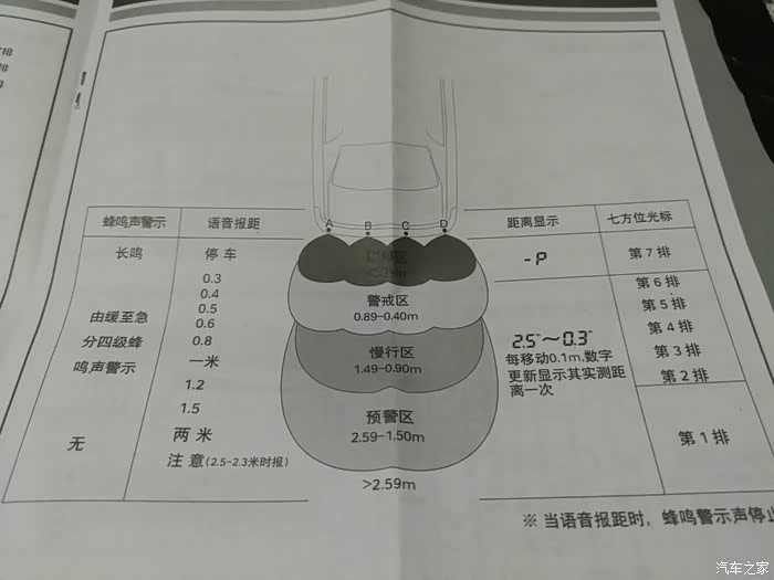 5.语音提示只是在到最小距离时发出,其他距离只有“滴滴”的提示,以急促感表示距离远近。