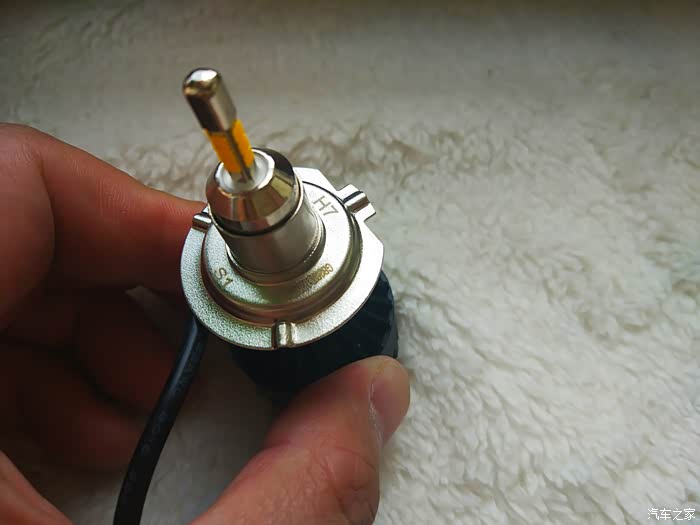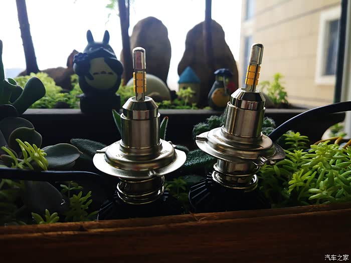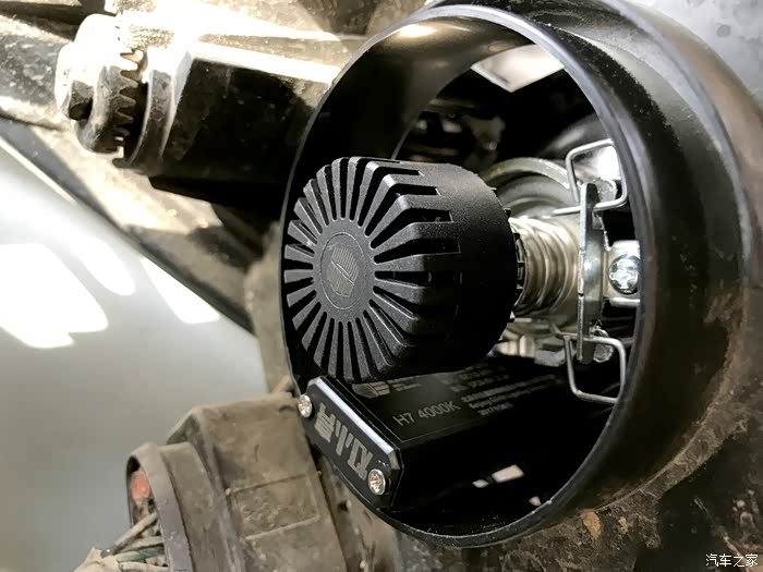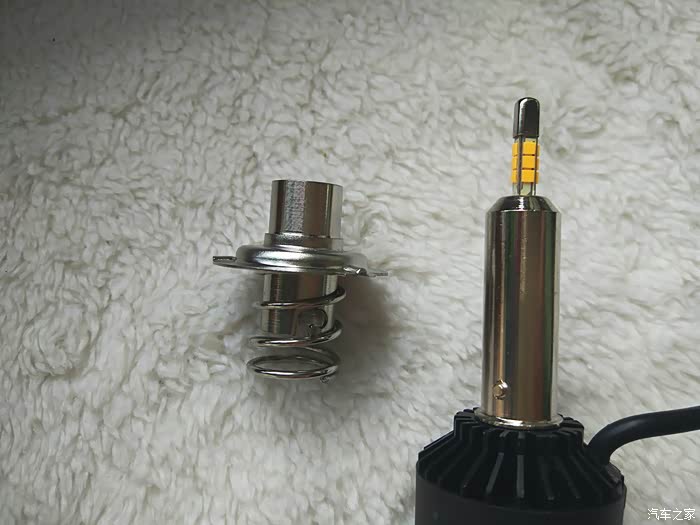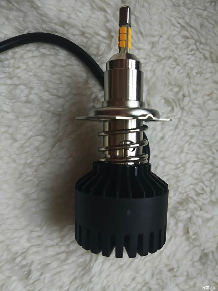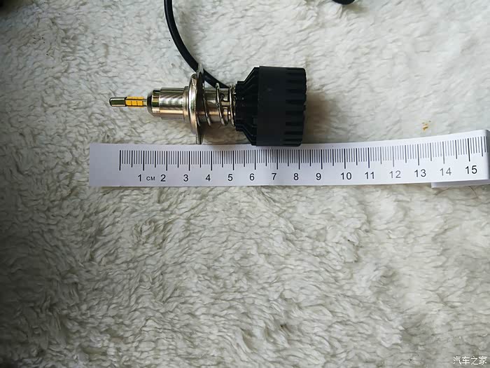 灯小亮LED大灯因为屁股后面有散热小风扇,所以比较长,8里面开外了,原车的卤素灯泡是6厘米