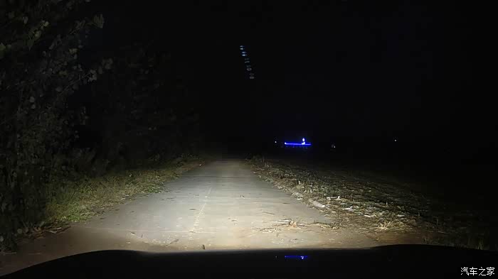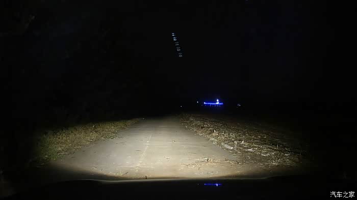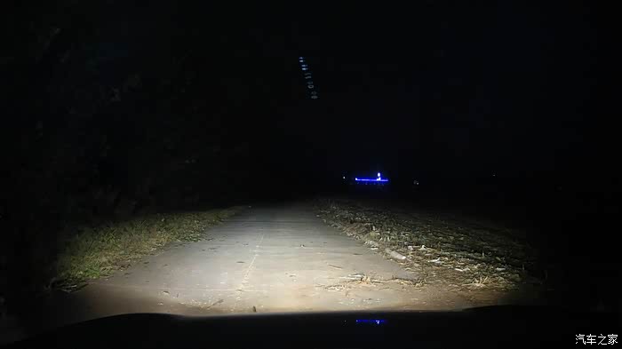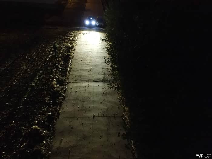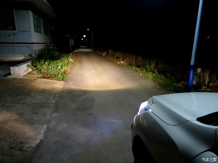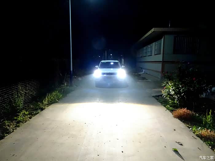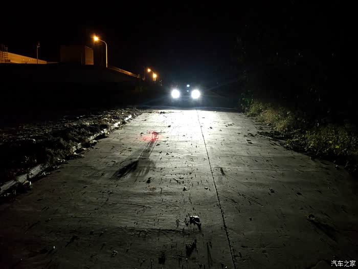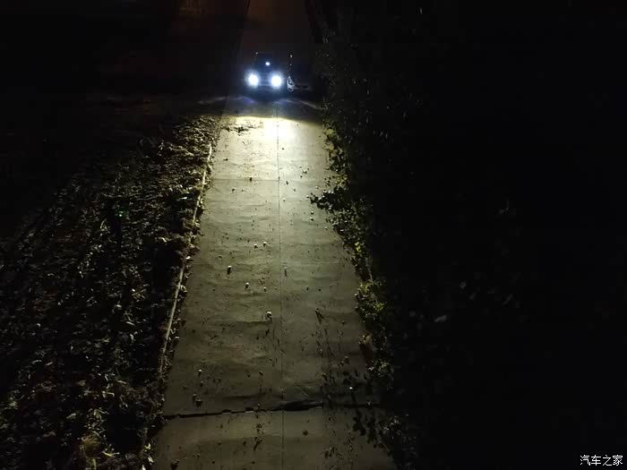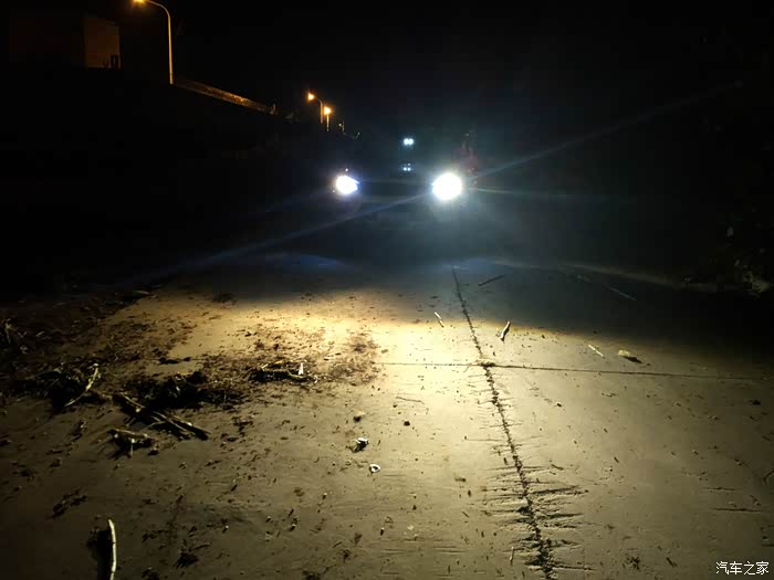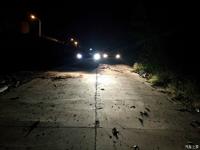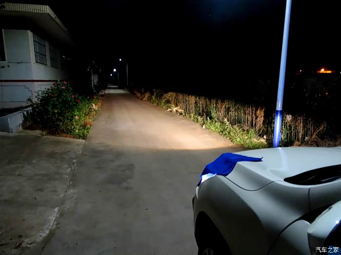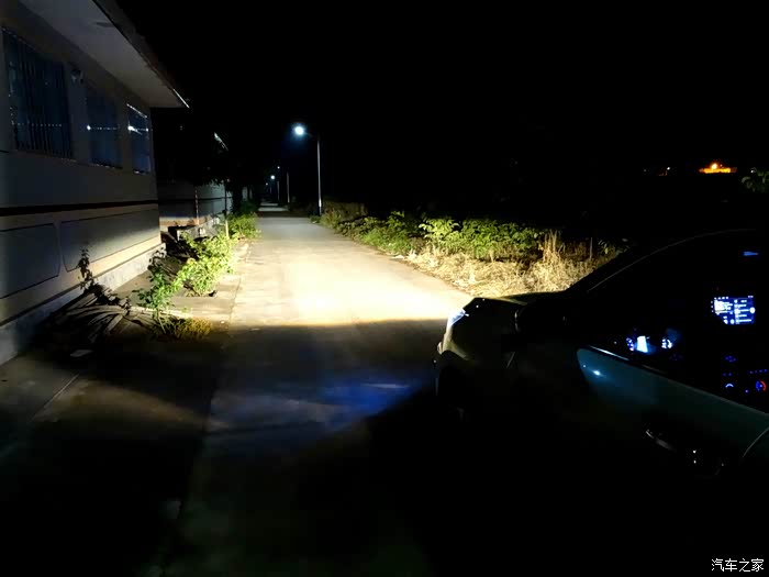 这就是已经换上灯小亮的效果,照射面积很不错,我把大灯调节到最高,有效照射距离达到25米以上