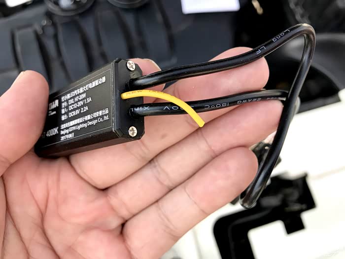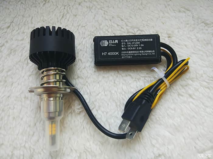 从照片中可以看出,灯小亮做工很不错,驱动器上面有灯的参数信息,H7 色温4000 功耗20W,输入12-20V 1.5A,输出9.6 2.2A,原车是55W/12V,如此看来灯小亮的这款LED近光灯要比原车卤素的省电。