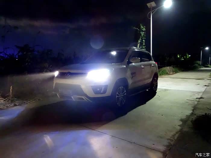 我的车是北汽绅宝X35,原车灯光都是卤素的,虽然是卤素的,但是点亮后的效果还是挺不错的,比我得弟弟的一汽骏派D60亮,比我同事的瑞风S5亮,比多数的卤素灯光的车子要亮,我还是比较满意的。