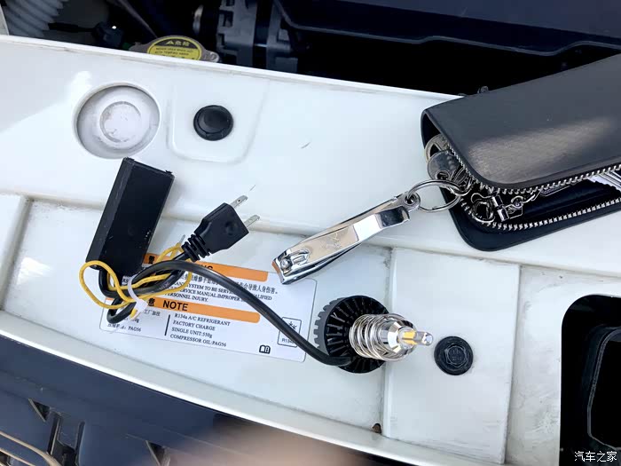 我这车的大灯还算好换,找到位置了,拔掉后面大灯防水罩