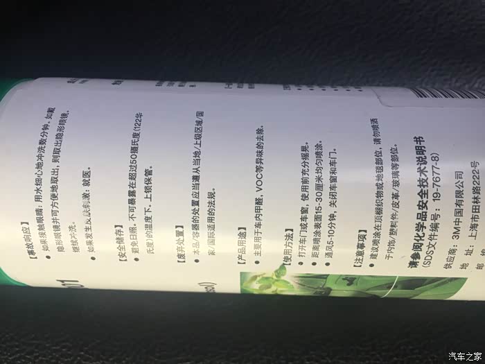 拿着瓶子又详细看看使用说明,晕啊,说明要求喷完后开着车门通风十分钟,不是闷十分钟,晕死了!