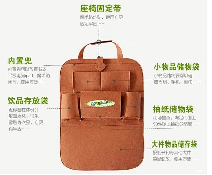 4、实用性挺不错,大大的增加了座椅靠背后面的储物能力,让原本只有一个储物袋的地方,一下子增加了6个,达到了7个,还各有各的空间,互不干扰。