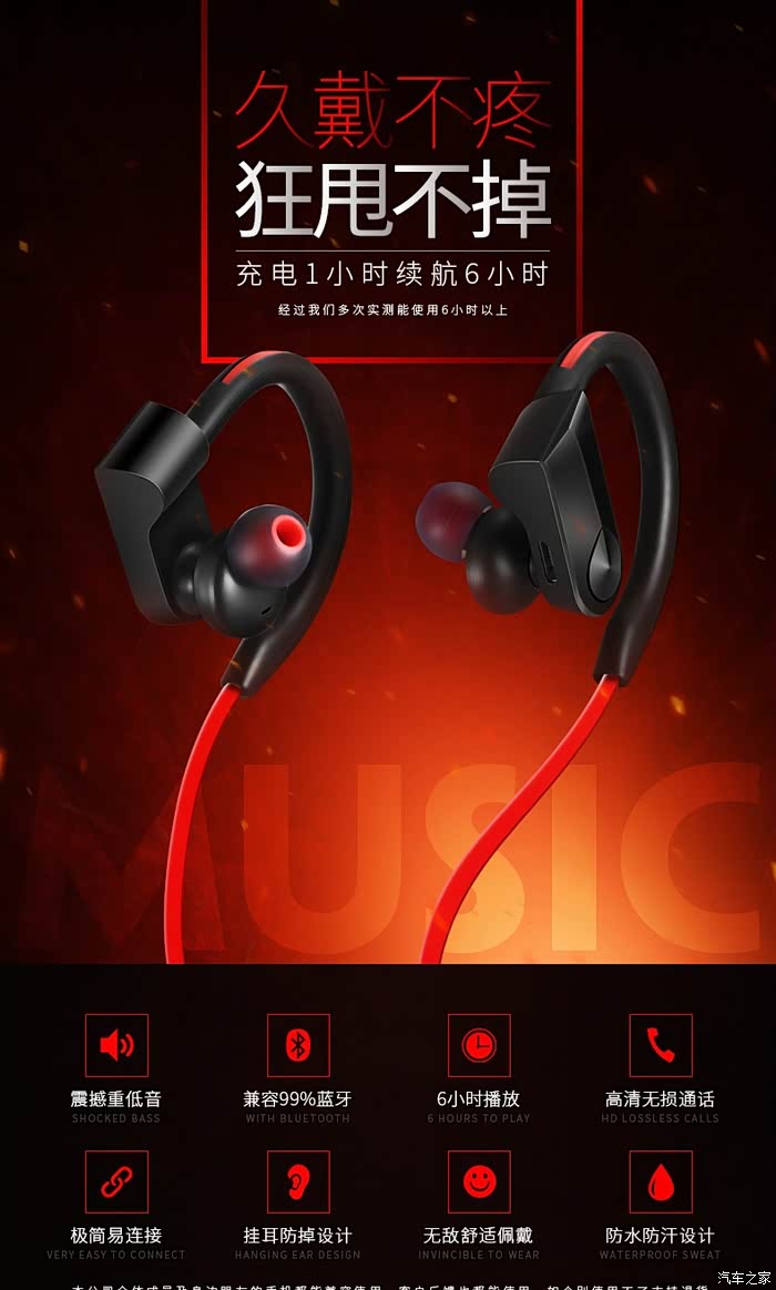 挂耳的设计是现在普遍的运动蓝牙耳机的设计,可以让我们在运动的时候,不论强度,都可以牢固的固定在耳朵上,以免给自己造成不必要的麻烦,防水防汗,并且可以在很短的时间内充满电,续航时间也还是蛮久的,超级简易的链接方式更加方便日常使用