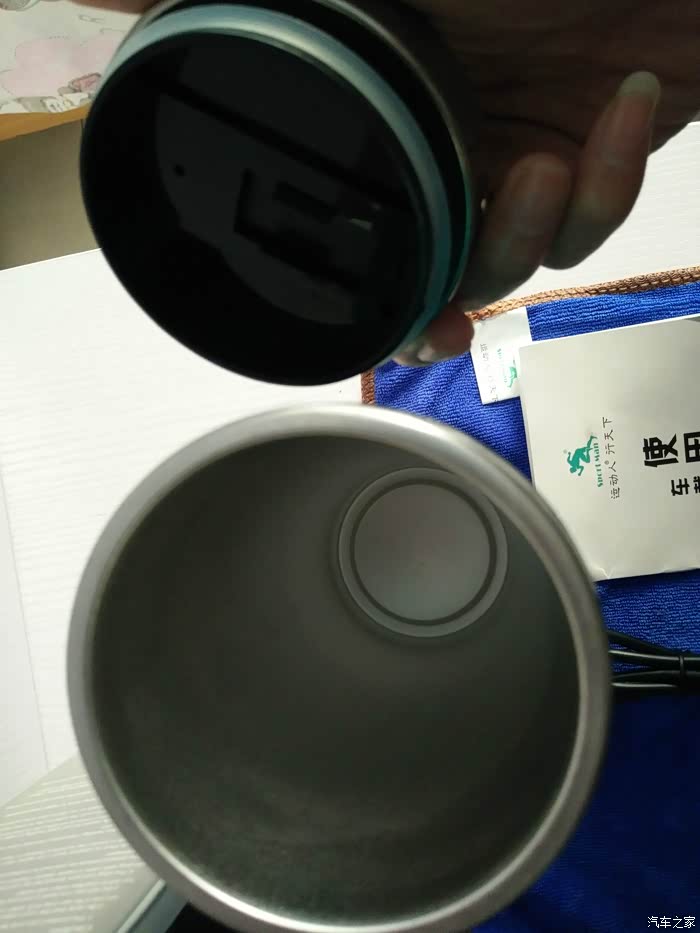 这是连接上线了,远处看的更具体一些。烧水的时候还是不要放太多的水,因为你在行驶中,车速快的话,以免会急刹车杯中的水溢出而烫伤。我放了半杯水,而且建议大家用纯净水,这样不用非要烧开饮用。加热即可。因为,自来水会产生水垢,而且必须要烧开,所以沸腾后行驶中避免发生意外烫伤。因为水量的不同,加热的时间自然也不一样了。还有切记杯子盖上的小孔要打开,以免烧开之后水蒸气溢出。冬天带孩子出门,也可以随时随地的喝到热水了。