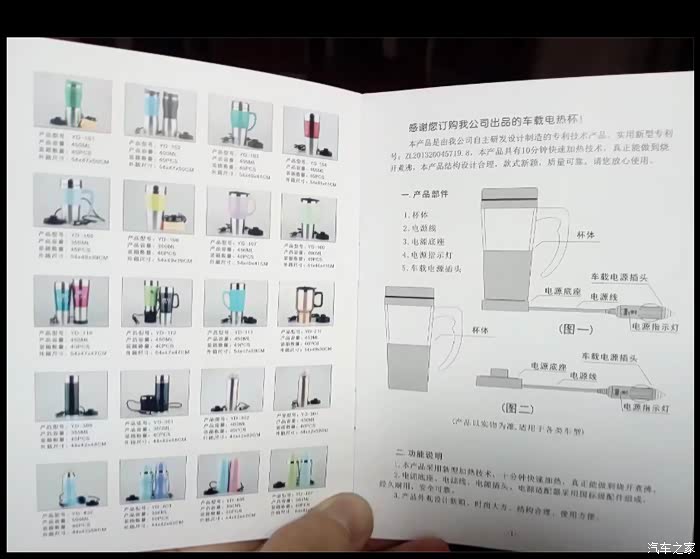 打开电热杯说明书,想不到的是,里面图文并茂,详细介绍了产品的型号,使用情况,还配上彩色图片。