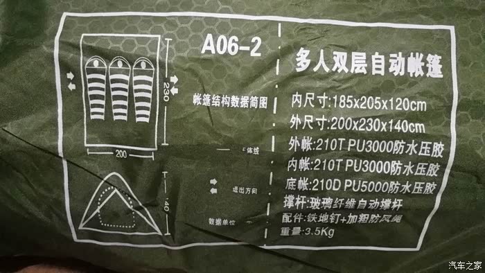 后边有帐篷的介绍,图片应该还算清晰,大家可以看上边的具体尺寸介绍,可以看出帐篷还是比较大的