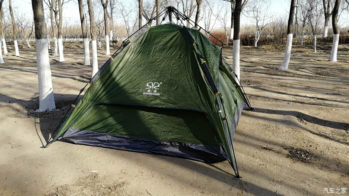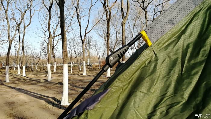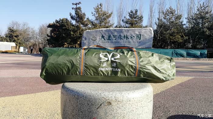 为了测试这个产品,特意选择了一个周末时间,带上了帐篷到了北京通州的大运河森林公园,里面有专门的帐篷搭建区,就在大运河边上,风景还是不错,但是冬季来临,草地都变成了枯草,风景远没有春夏的漂亮
