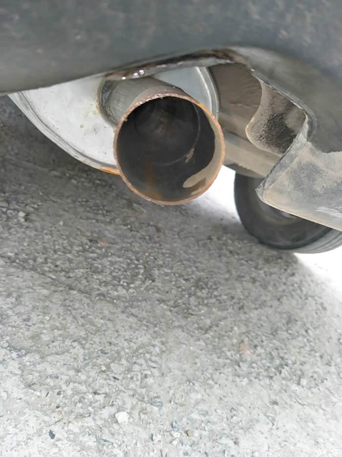 第二天,使用黄金液50公里后,下车看排气管,毕竟没有专业仪器去测试,油耗和动力表现的主观性又太强,看尾气是最直观有效的办法。有白雾排出,汽油味比过去淡了些(可能是心理作用)