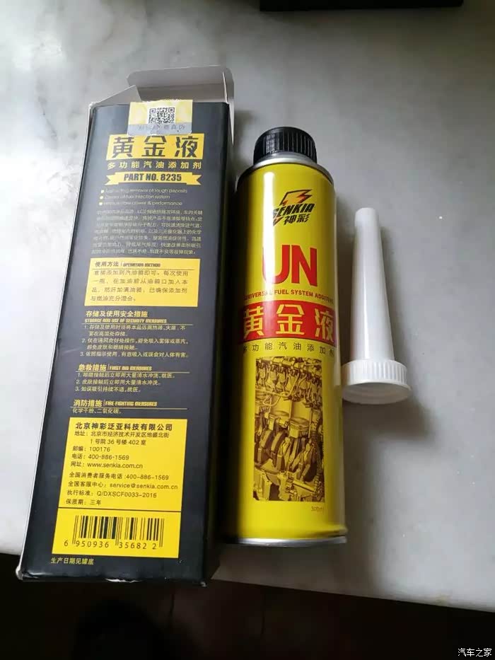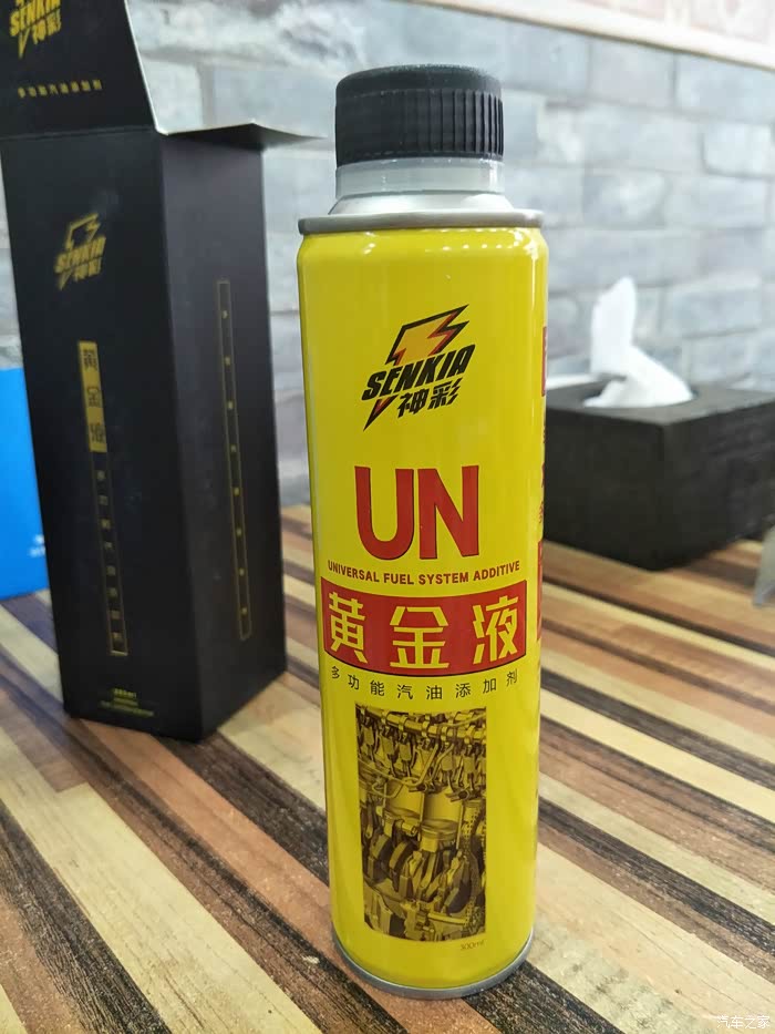 神彩黄金液,是用来除积碳的,刚好我的老车也十三年车龄了,到我手里才两个月,机油机滤空滤都换了,就是没有做油路清洗,因此这车虽然是怠速平稳,但是抖动却很明显,除去发动机机脚老化和纵置发动机设计,多少也和积碳有关系。