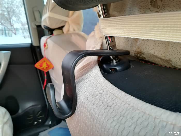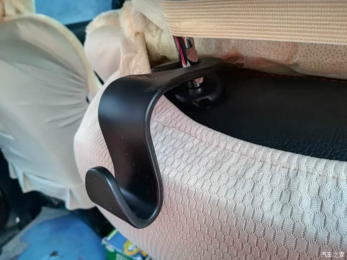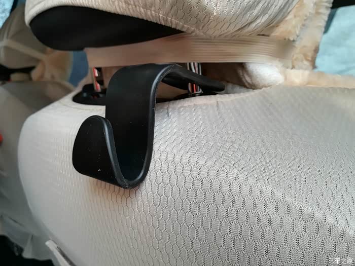 副驾驶处挂钩安装不贴切,不死心的我又来到日常使用较平凡的后备箱,尝试将挂钩安装在后排座椅靠背处。