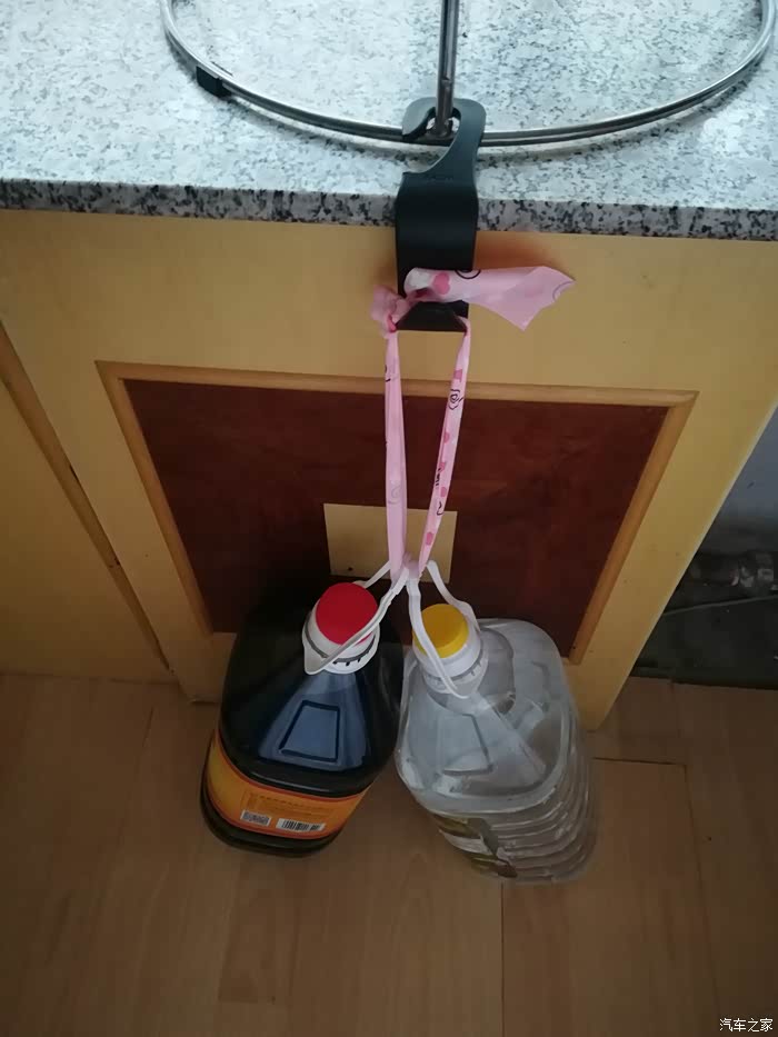 细节、安装都已测试,接下来就是评测挂钩的主要功能——承重。根据产品宣传可以承重20KG,苦于家中没有20KG整的物品,也没有哑铃,只能找油壶客串了。本想两个油壶加上我家7个月月龄的臭宝(9KG重)来凑够20KG以满足评测准确性、客观性,但日常使用中很少会出现把20KG重物挂在高处或是集中挂在一个挂钩上,所以取中间值10KG来进行评测。